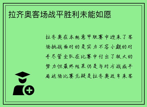 拉齐奥在本轮意甲联赛中迎来了客场挑战,面对的是实力不容小觑的对手。尽管全队在比赛中付出了极大的努力,但最终结果仍是与对方战成平局。这场比赛无疑是拉齐奥近年来客场表现中的又一次遗憾,胜利依旧未能如愿。