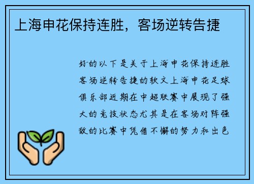 好的,以下是关于“上海申花保持连胜,客场逆转告捷”的软文。