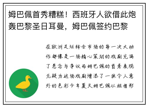 在欧洲足坛,转会市场的每一次大动作都像是一场精心策划的戏剧,充满了悬念与争议。而姆巴佩的首秀表现无疑为这场戏剧增添了一抹令人意外的色彩。
